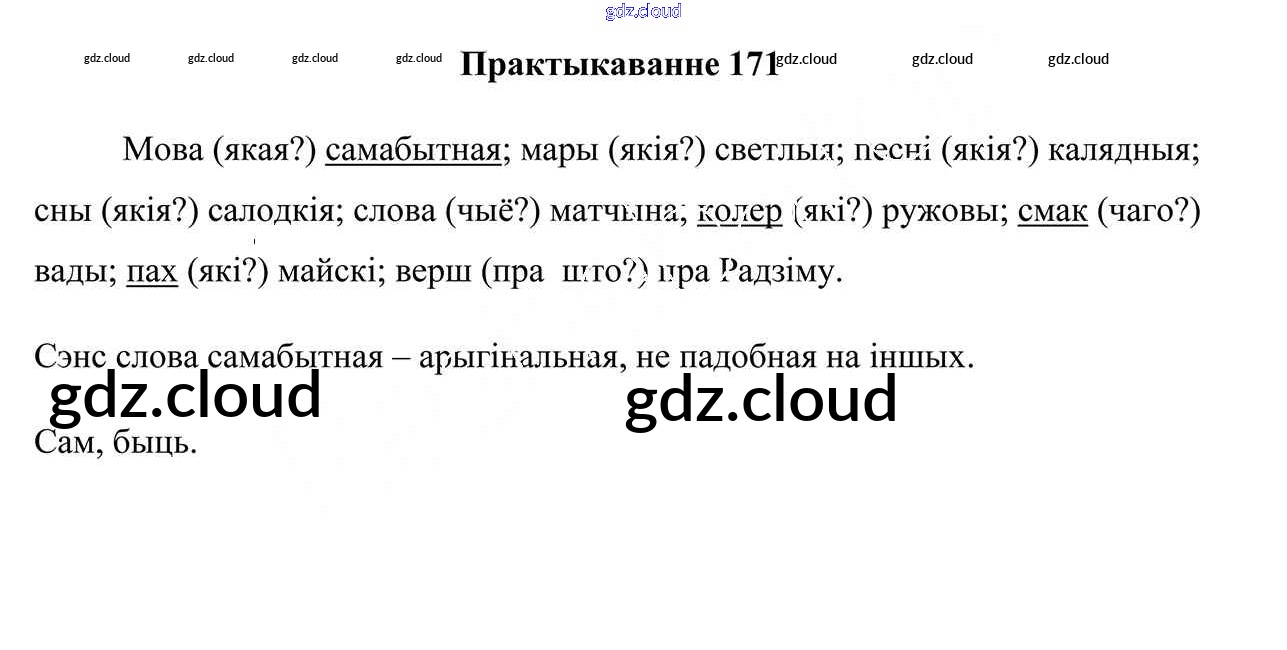 Ответ на задание 171 Учебник Белорусский язык за 5 (пятый) класс Валочка, Зелянко, Мартынкевіч, Якуба 2019 Часть 1, 2