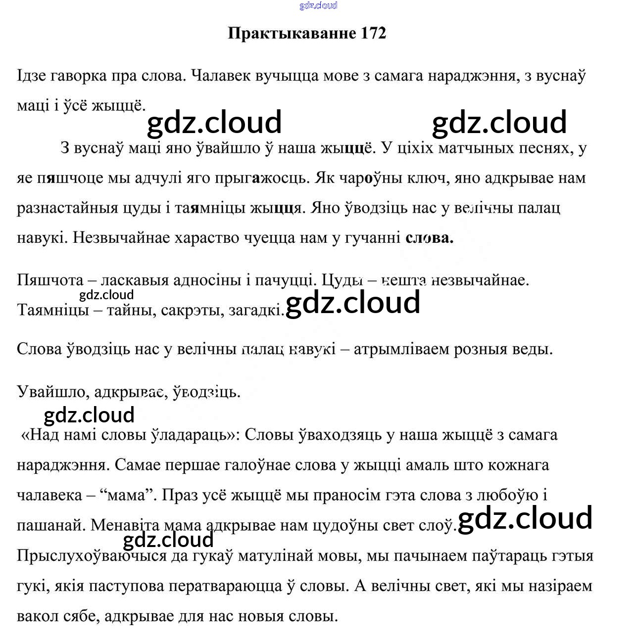 Ответ на задание 172 Учебник Белорусский язык за 5 (пятый) класс Валочка, Зелянко, Мартынкевіч, Якуба 2019 Часть 1, 2