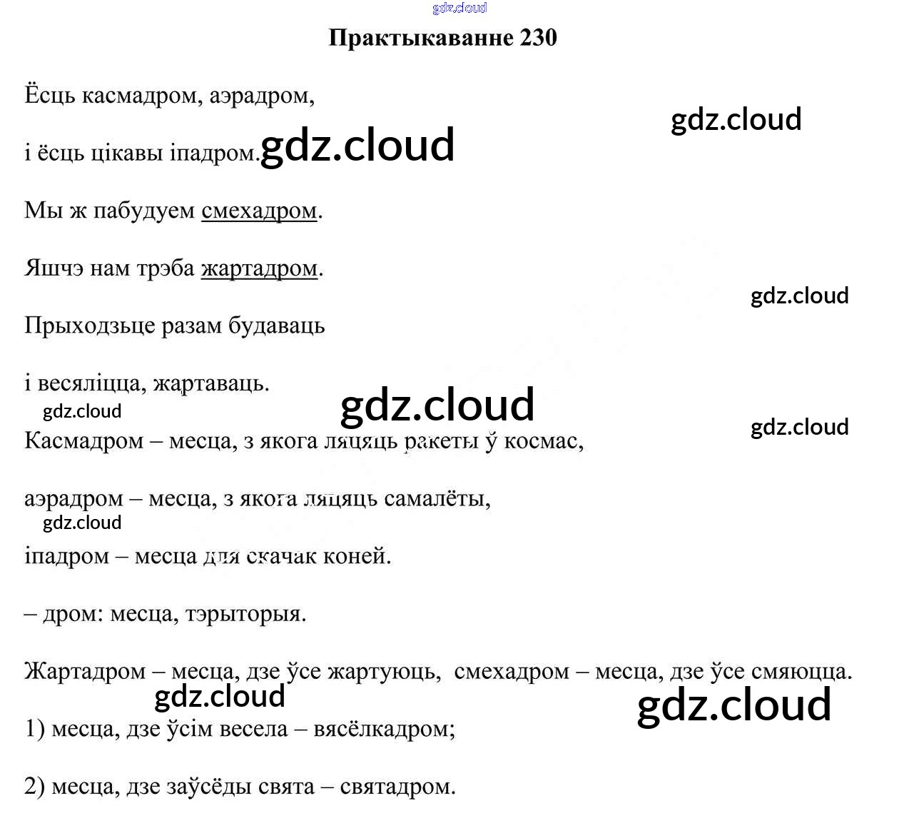 Ответ на задание 230 Учебник Белорусский язык за 5 (пятый) класс Валочка, Зелянко, Мартынкевіч, Якуба 2019 Часть 1, 2