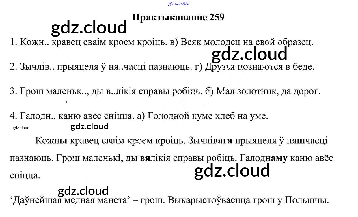 Ответ на задание 259 Учебник Белорусский язык за 5 (пятый) класс Валочка, Зелянко, Мартынкевіч, Якуба 2019 Часть 1, 2