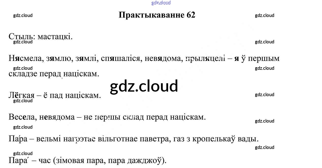Ответ на задание 62 Учебник Белорусский язык за 5 (пятый) класс Валочка, Зелянко, Мартынкевіч, Якуба 2019 Часть 1, 2