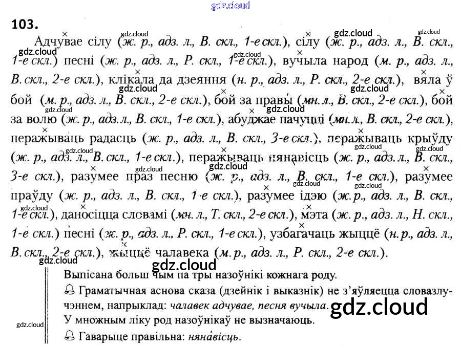 Ответ на задание 103 Учебник Белорусский язык за 6 (шестой) класс Красней, Лаурель, Рачэўскі 2015