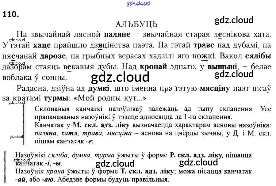 Ответ на задание 110 Учебник Белорусский язык за 6 (шестой) класс Красней, Лаурель, Рачэўскі 2015