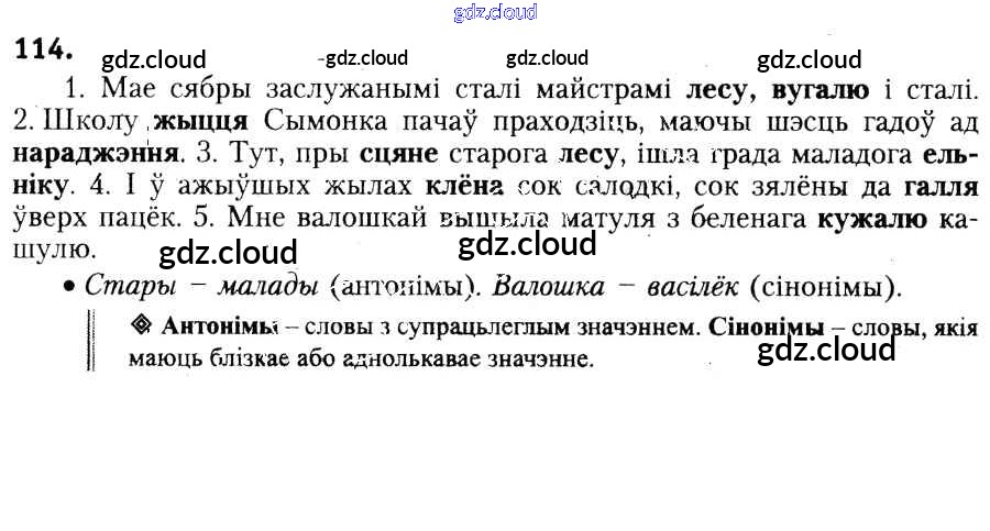 Ответ на задание 114 Учебник Белорусский язык за 6 (шестой) класс Красней, Лаурель, Рачэўскі 2015