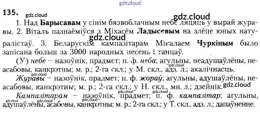 Ответ на задание 135 Учебник Белорусский язык за 6 (шестой) класс Красней, Лаурель, Рачэўскі 2015