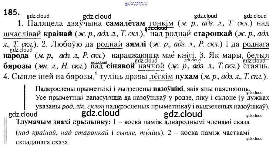 Ответ на задание 185 Учебник Белорусский язык за 6 (шестой) класс Красней, Лаурель, Рачэўскі 2015