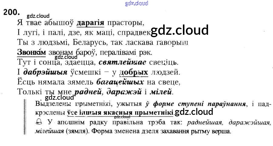 Ответ на задание 200 Учебник Белорусский язык за 6 (шестой) класс Красней, Лаурель, Рачэўскі 2015