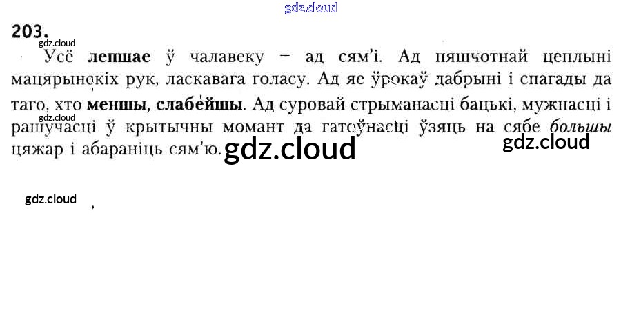 Ответ на задание 203 Учебник Белорусский язык за 6 (шестой) класс Красней, Лаурель, Рачэўскі 2015