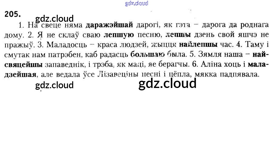 Ответ на задание 205 Учебник Белорусский язык за 6 (шестой) класс Красней, Лаурель, Рачэўскі 2015
