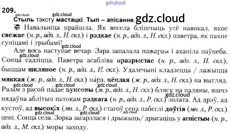Ответ на задание 209 Учебник Белорусский язык за 6 (шестой) класс Красней, Лаурель, Рачэўскі 2015