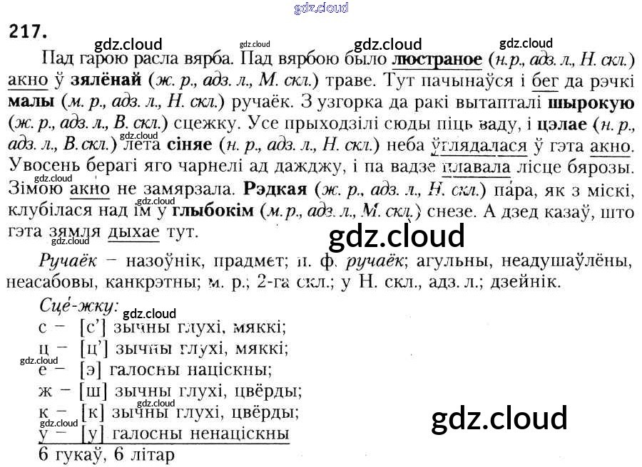 Ответ на задание 217 Учебник Белорусский язык за 6 (шестой) класс Красней, Лаурель, Рачэўскі 2015