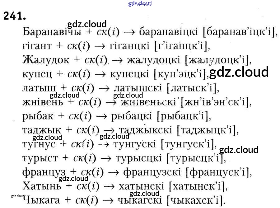 Ответ на задание 241 Учебник Белорусский язык за 6 (шестой) класс Красней, Лаурель, Рачэўскі 2015
