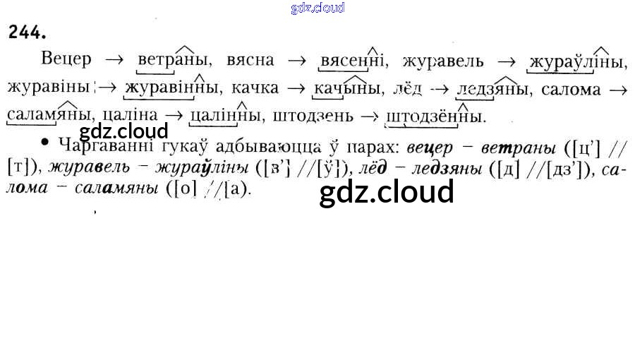 Ответ на задание 244 Учебник Белорусский язык за 6 (шестой) класс Красней, Лаурель, Рачэўскі 2015