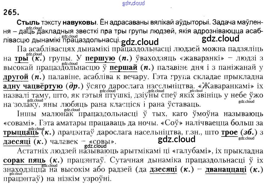 Ответ на задание 265 Учебник Белорусский язык за 6 (шестой) класс Красней, Лаурель, Рачэўскі 2015
