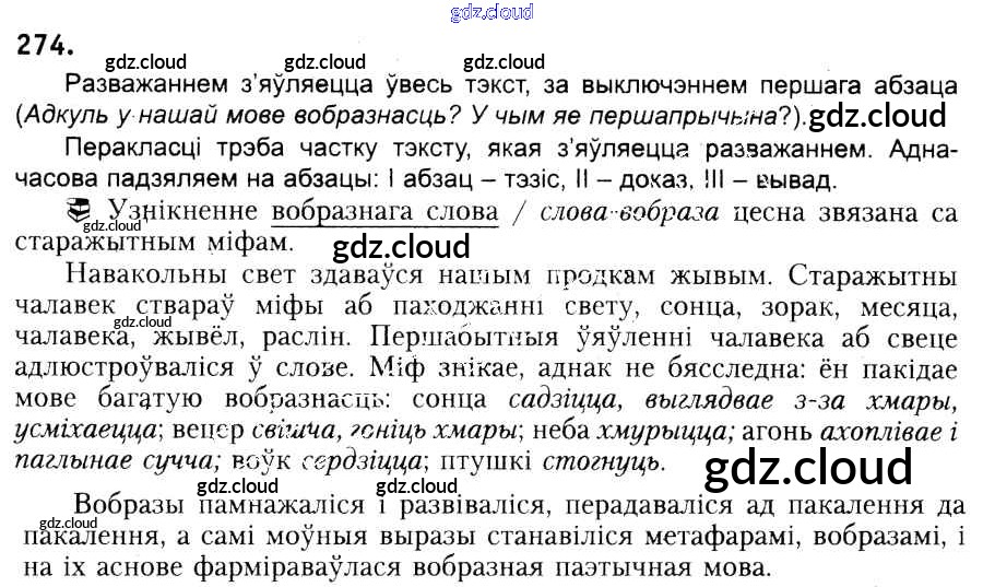 Ответ на задание 274 Учебник Белорусский язык за 6 (шестой) класс Красней, Лаурель, Рачэўскі 2015