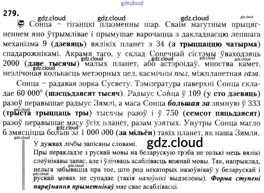 Ответ на задание 279 Учебник Белорусский язык за 6 (шестой) класс Красней, Лаурель, Рачэўскі 2015