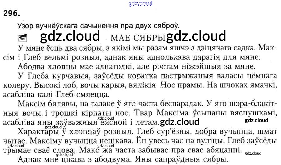 Ответ на задание 296 Учебник Белорусский язык за 6 (шестой) класс Красней, Лаурель, Рачэўскі 2015