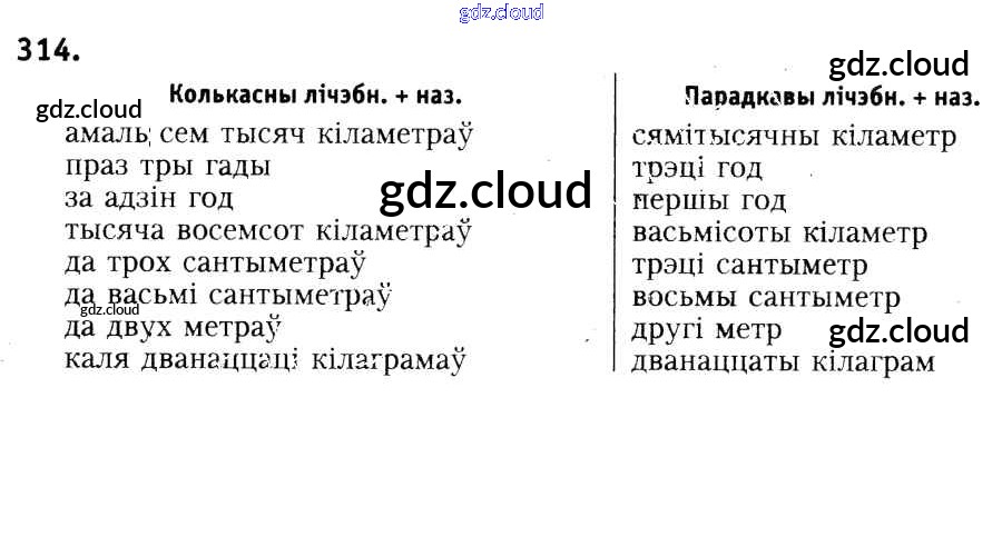 Ответ на задание 314 Учебник Белорусский язык за 6 (шестой) класс Красней, Лаурель, Рачэўскі 2015