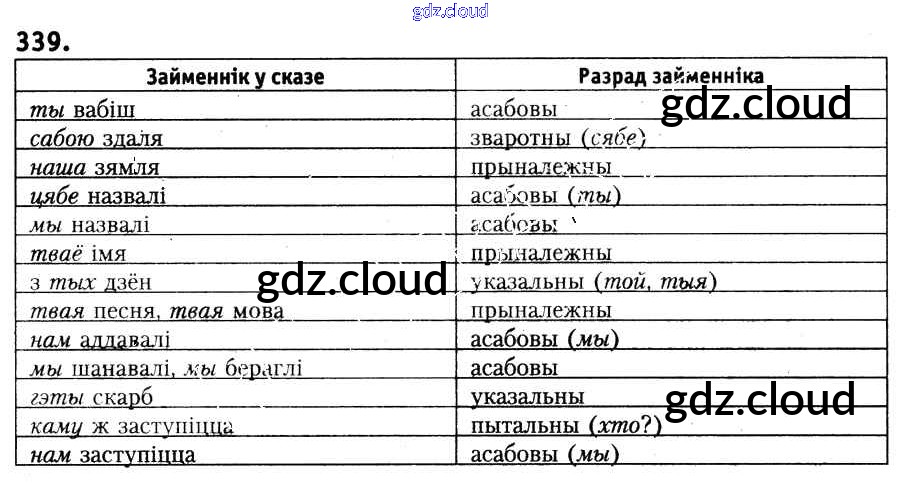Ответ на задание 339 Учебник Белорусский язык за 6 (шестой) класс Красней, Лаурель, Рачэўскі 2015