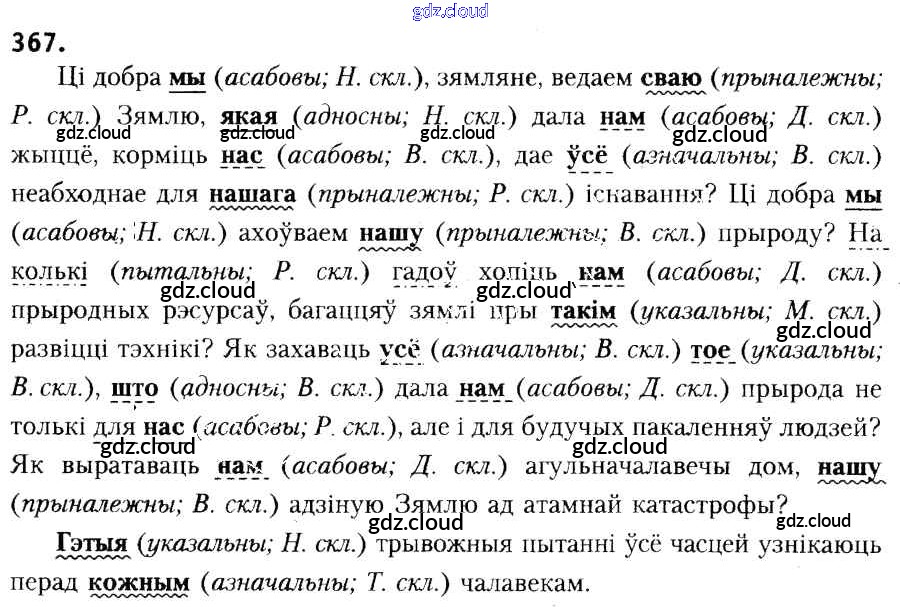 Ответ на задание 367 Учебник Белорусский язык за 6 (шестой) класс Красней, Лаурель, Рачэўскі 2015