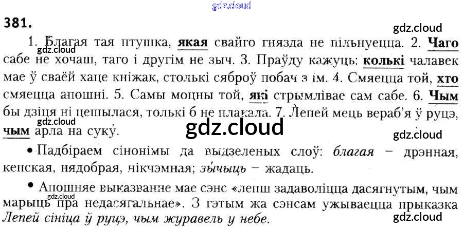 Ответ на задание 381 Учебник Белорусский язык за 6 (шестой) класс Красней, Лаурель, Рачэўскі 2015