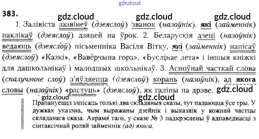 Ответ на задание 383 Учебник Белорусский язык за 6 (шестой) класс Красней, Лаурель, Рачэўскі 2015