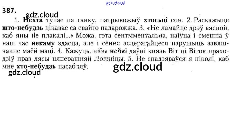 Ответ на задание 387 Учебник Белорусский язык за 6 (шестой) класс Красней, Лаурель, Рачэўскі 2015
