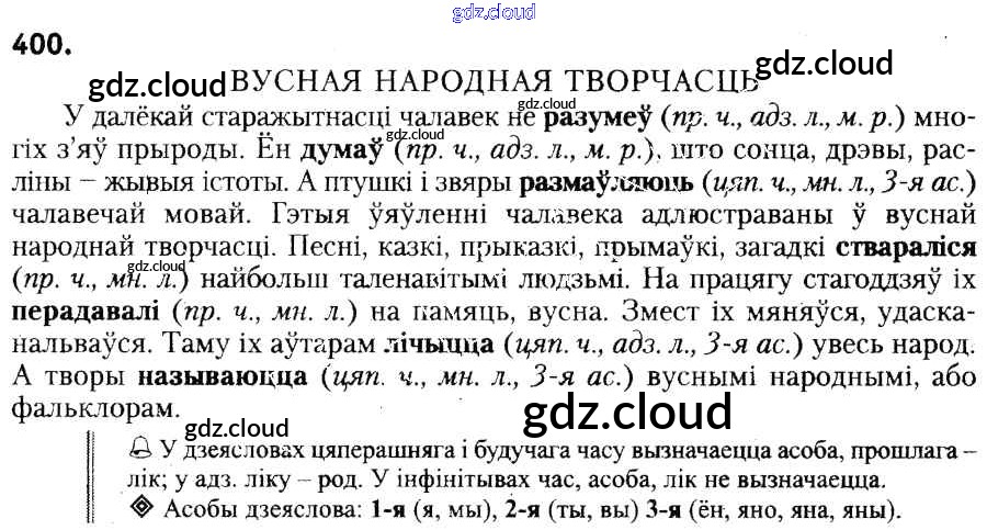 Ответ на задание 400 Учебник Белорусский язык за 6 (шестой) класс Красней, Лаурель, Рачэўскі 2015