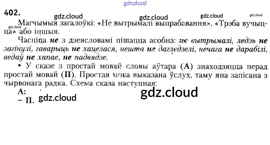 Ответ на задание 402 Учебник Белорусский язык за 6 (шестой) класс Красней, Лаурель, Рачэўскі 2015