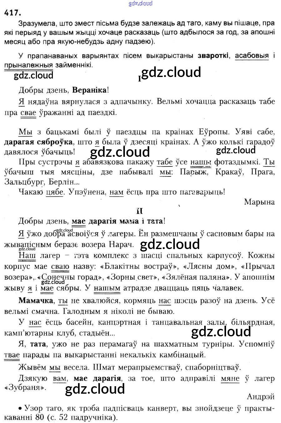 Ответ на задание 417 Учебник Белорусский язык за 6 (шестой) класс Красней, Лаурель, Рачэўскі 2015
