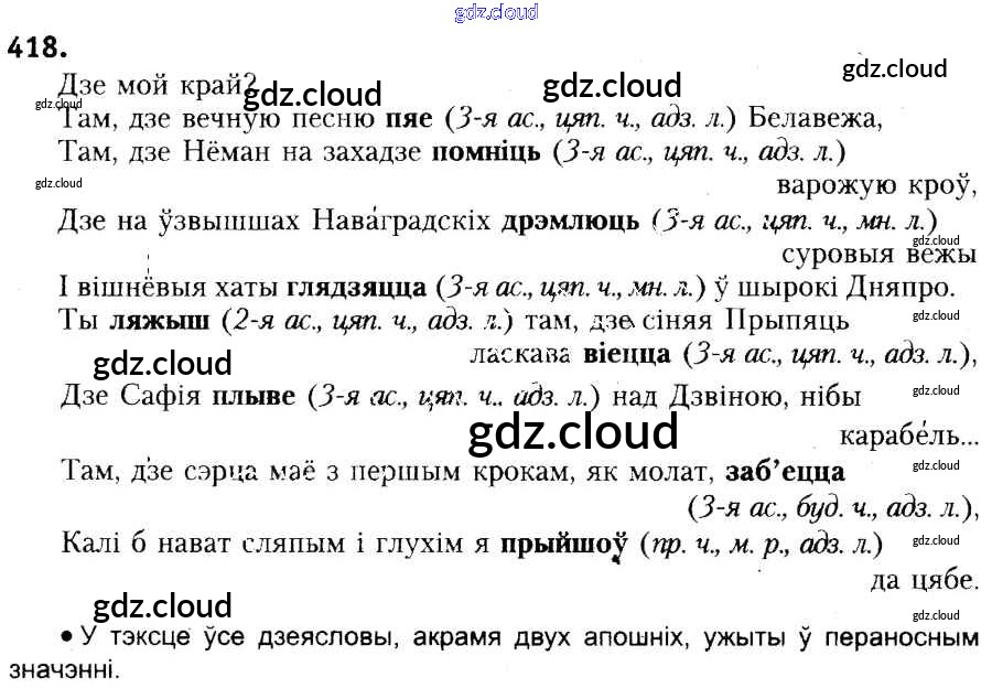 Ответ на задание 418 Учебник Белорусский язык за 6 (шестой) класс Красней, Лаурель, Рачэўскі 2015