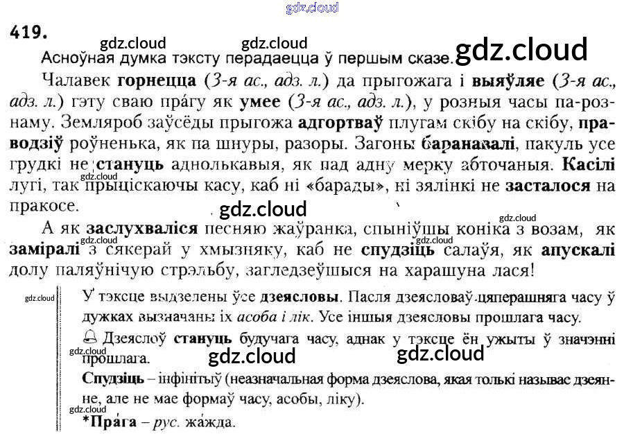 Ответ на задание 419 Учебник Белорусский язык за 6 (шестой) класс Красней, Лаурель, Рачэўскі 2015