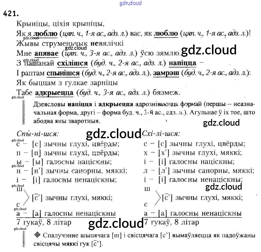 Ответ на задание 421 Учебник Белорусский язык за 6 (шестой) класс Красней, Лаурель, Рачэўскі 2015