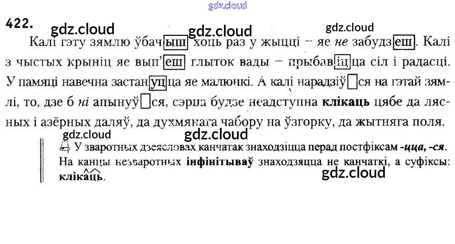 Ответ на задание 422 Учебник Белорусский язык за 6 (шестой) класс Красней, Лаурель, Рачэўскі 2015