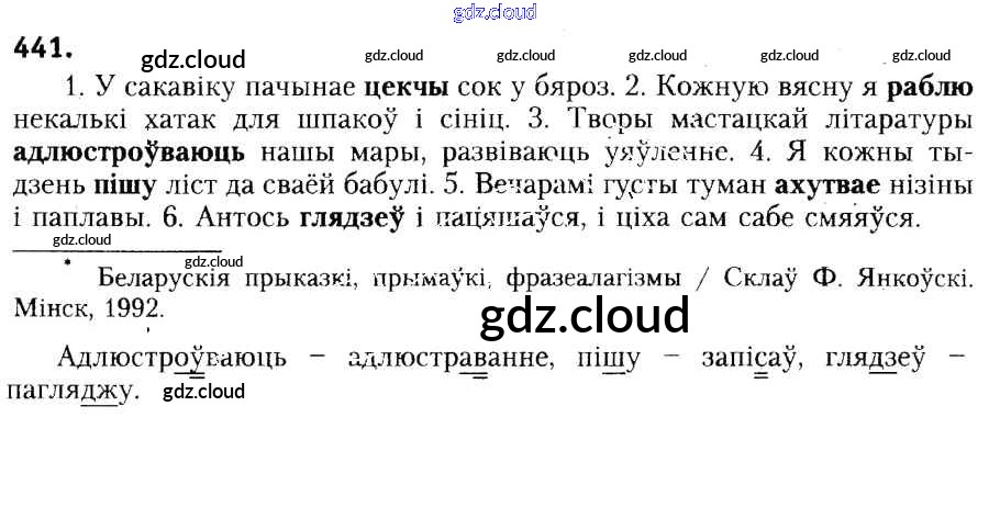 Ответ на задание 441 Учебник Белорусский язык за 6 (шестой) класс Красней, Лаурель, Рачэўскі 2015
