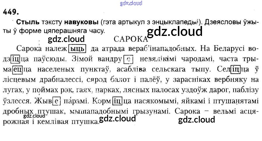Ответ на задание 449 Учебник Белорусский язык за 6 (шестой) класс Красней, Лаурель, Рачэўскі 2015