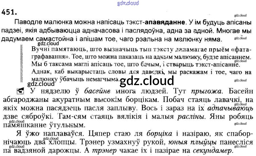 Ответ на задание 451 Учебник Белорусский язык за 6 (шестой) класс Красней, Лаурель, Рачэўскі 2015