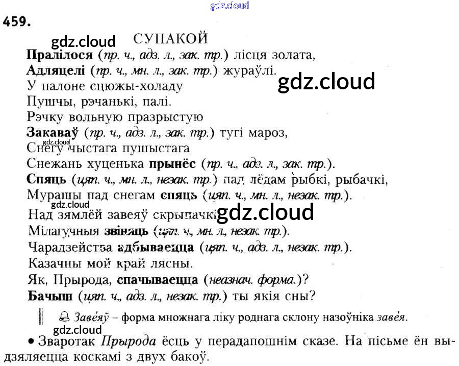 Ответ на задание 459 Учебник Белорусский язык за 6 (шестой) класс Красней, Лаурель, Рачэўскі 2015