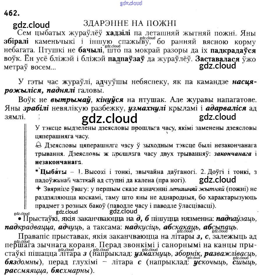 Ответ на задание 462 Учебник Белорусский язык за 6 (шестой) класс Красней, Лаурель, Рачэўскі 2015