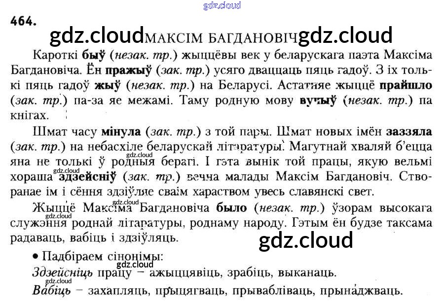Ответ на задание 464 Учебник Белорусский язык за 6 (шестой) класс Красней, Лаурель, Рачэўскі 2015