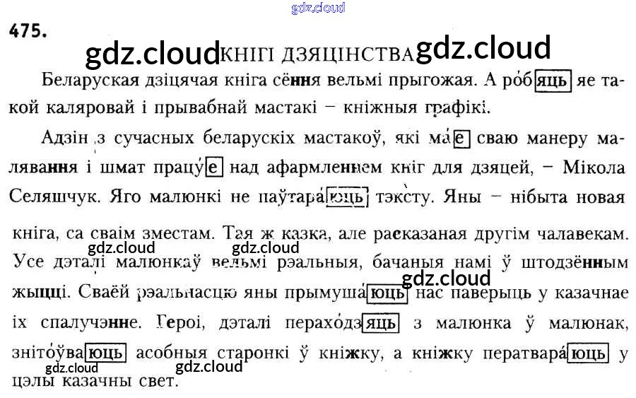 Ответ на задание 475 Учебник Белорусский язык за 6 (шестой) класс Красней, Лаурель, Рачэўскі 2015