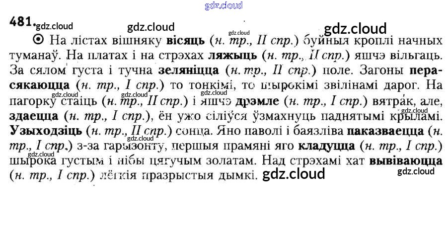 Ответ на задание 481 Учебник Белорусский язык за 6 (шестой) класс Красней, Лаурель, Рачэўскі 2015