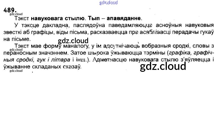Ответ на задание 489 Учебник Белорусский язык за 6 (шестой) класс Красней, Лаурель, Рачэўскі 2015