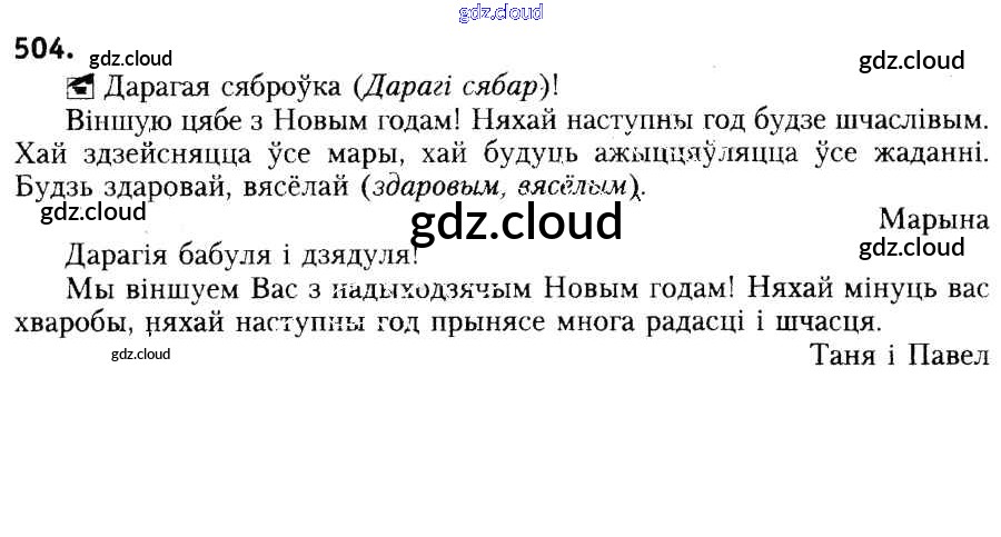 Ответ на задание 504 Учебник Белорусский язык за 6 (шестой) класс Красней, Лаурель, Рачэўскі 2015