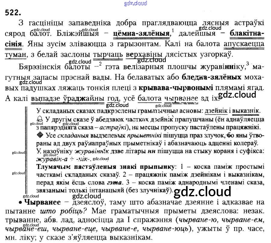 Ответ на задание 522 Учебник Белорусский язык за 6 (шестой) класс Красней, Лаурель, Рачэўскі 2015