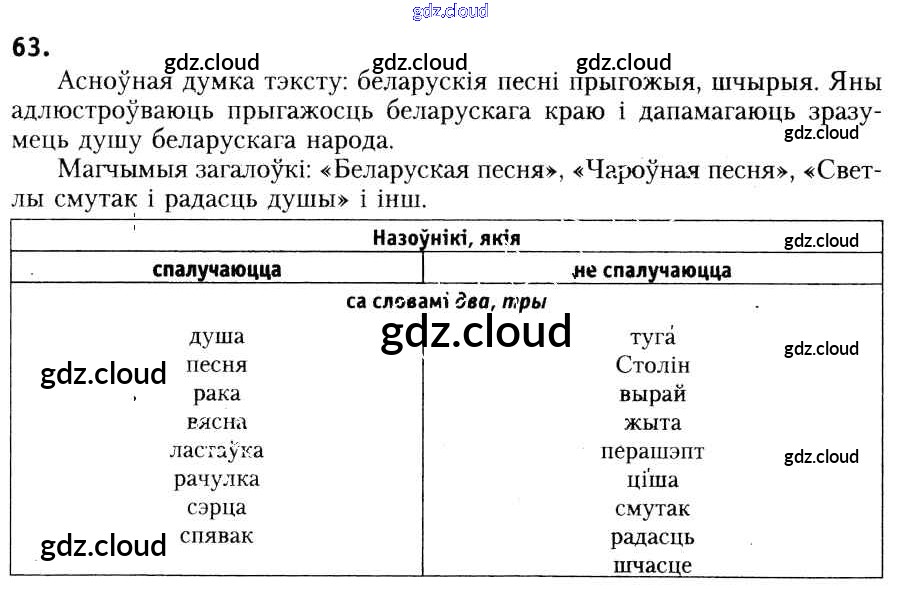 Ответ на задание 63 Учебник Белорусский язык за 6 (шестой) класс Красней, Лаурель, Рачэўскі 2015