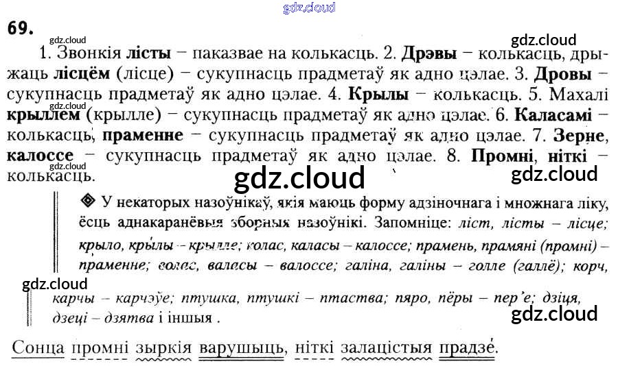 Ответ на задание 69 Учебник Белорусский язык за 6 (шестой) класс Красней, Лаурель, Рачэўскі 2015