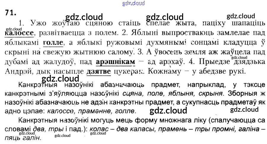 Ответ на задание 71 Учебник Белорусский язык за 6 (шестой) класс Красней, Лаурель, Рачэўскі 2015