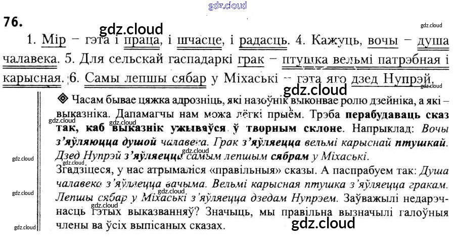 Ответ на задание 76 Учебник Белорусский язык за 6 (шестой) класс Красней, Лаурель, Рачэўскі 2015