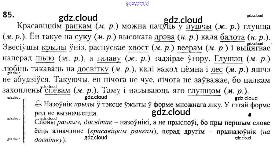 Ответ на задание 85 Учебник Белорусский язык за 6 (шестой) класс Красней, Лаурель, Рачэўскі 2015